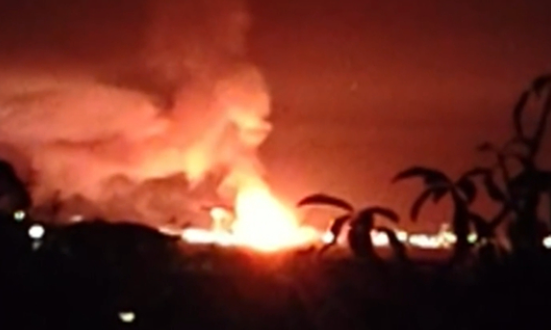 上图是媒体发布的现场图片,可以清晰看到有爆炸的火光出现,即便是深夜,依然能够看到滚滚浓烟升腾而起。