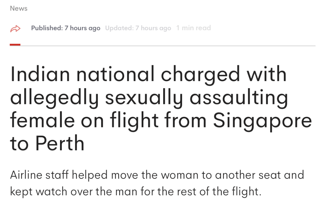 本周,一架飞往澳洲的国际航班上发生性侵指控事件,