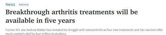这还没完,澳洲在关节炎领域还有更大的突破!