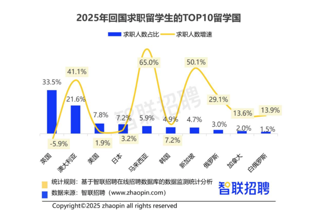 智联招聘《2025海归就业力调查报告》显示,顶尖理工科海归平均起薪约25万/年,而部分文科专业不足8万/年,差距超过三倍。