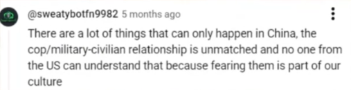 这正是中国警民间温情与信任的真实写照。有网友评论道:“这种军民关系、警民关系是无与伦比的,没有哪个美国人能理解这一点,因为恐惧已经刻入他们的文化基因。”