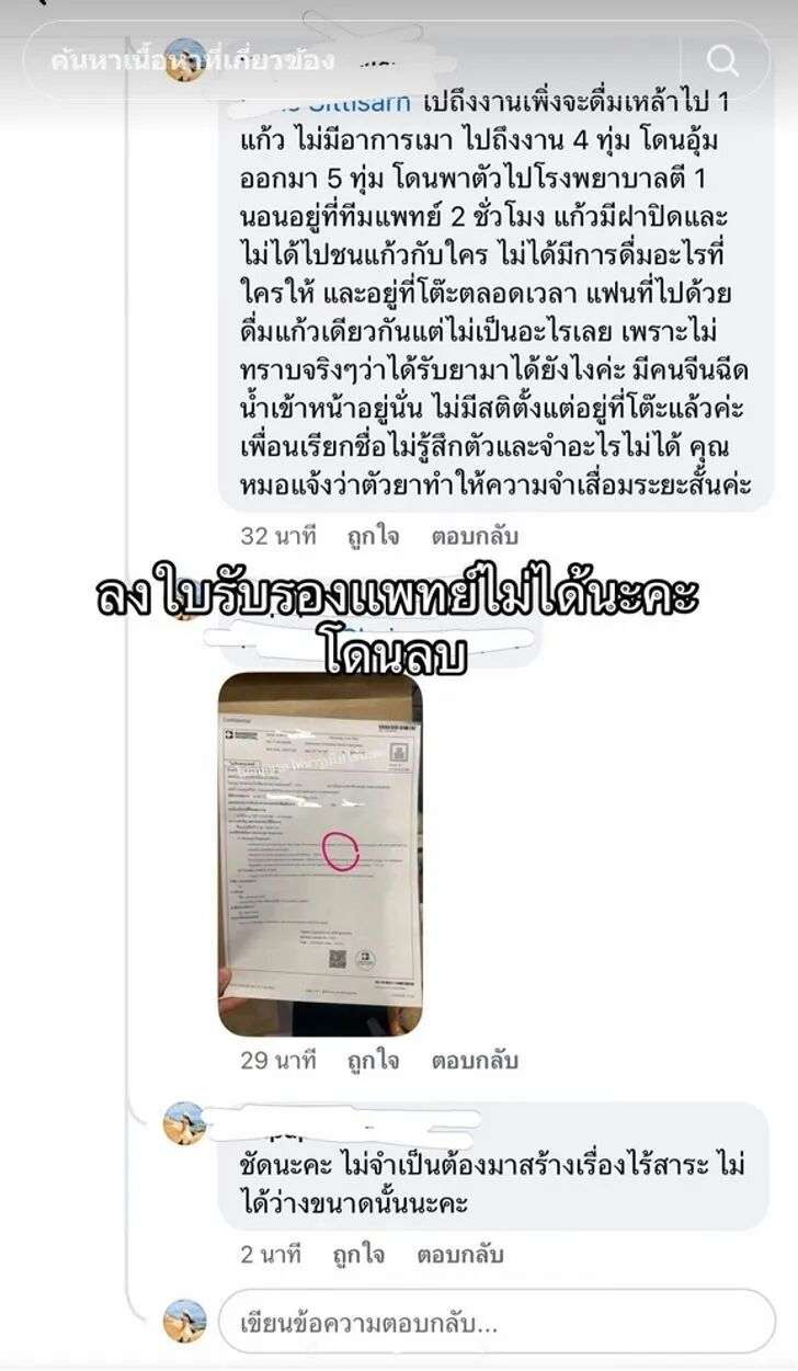 她表示,自己前往曼谷知名娱乐区参加泼水活动时,突然出现身体抽搐、口吐白沫并当场失去意识,送医检查后,体内被检出“GHB(γ-羟基丁酸)”成分,事件迅速引发泰国社交平台广泛关注。