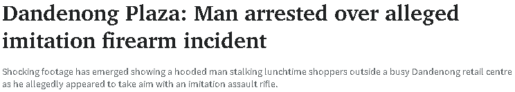 墨尔本东南区出事了,一个穿着连帽衫的“持枪”男子,在商场门口“吓坏一圈人”。