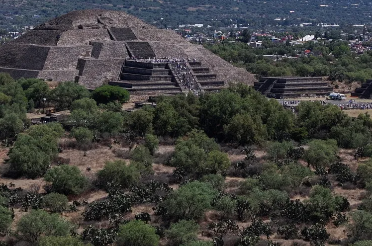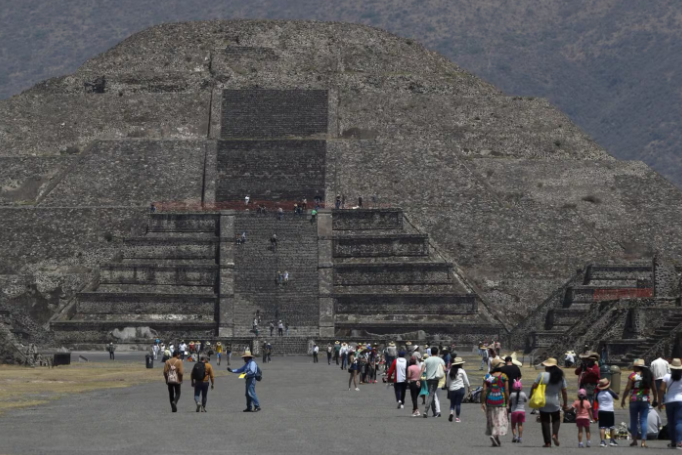 当时正值游客高峰,大批游客聚集在“月亮金字塔”(Pyramid of the Moon)观景。