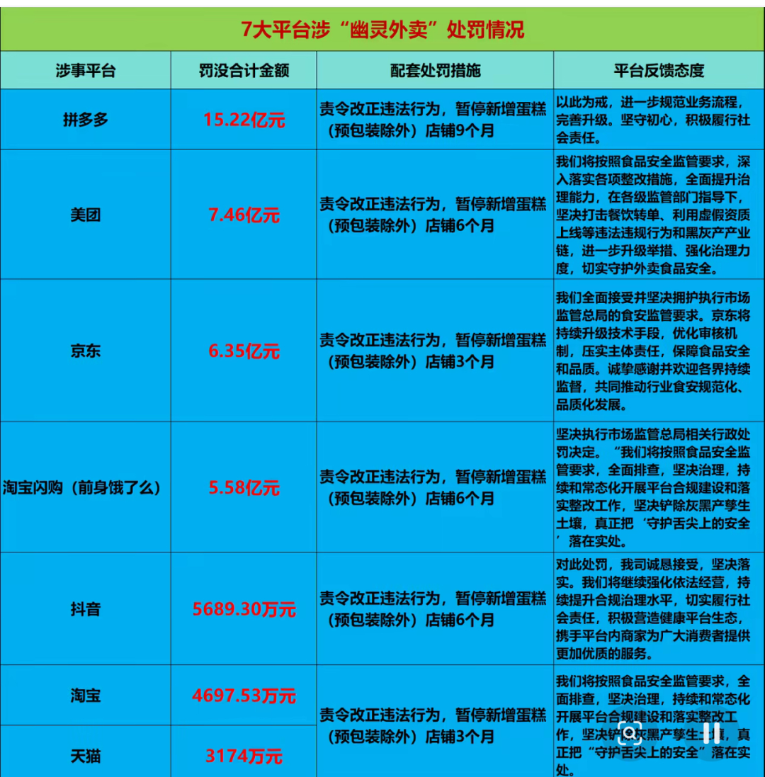 不仅仅是拼多多,在这场整顿风暴中,还有其他6家主流电商平台也被惩罚。