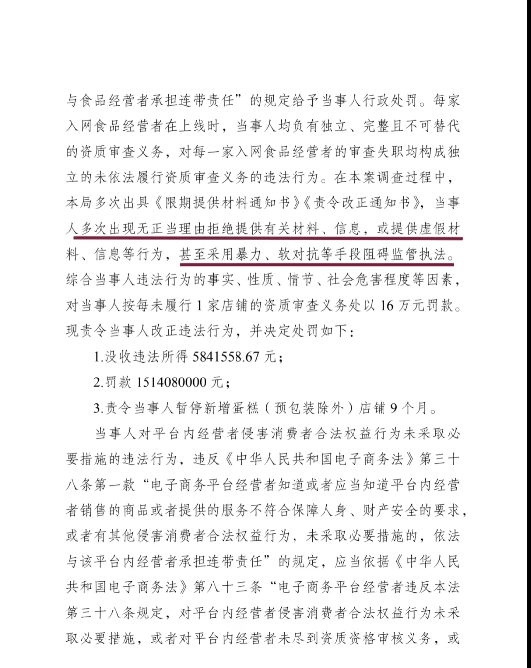 在公开的文件中还写明了拼多多拒绝提供材料或者提供虚假材料,甚至采取暴力或者软对抗的方式阻碍执法。