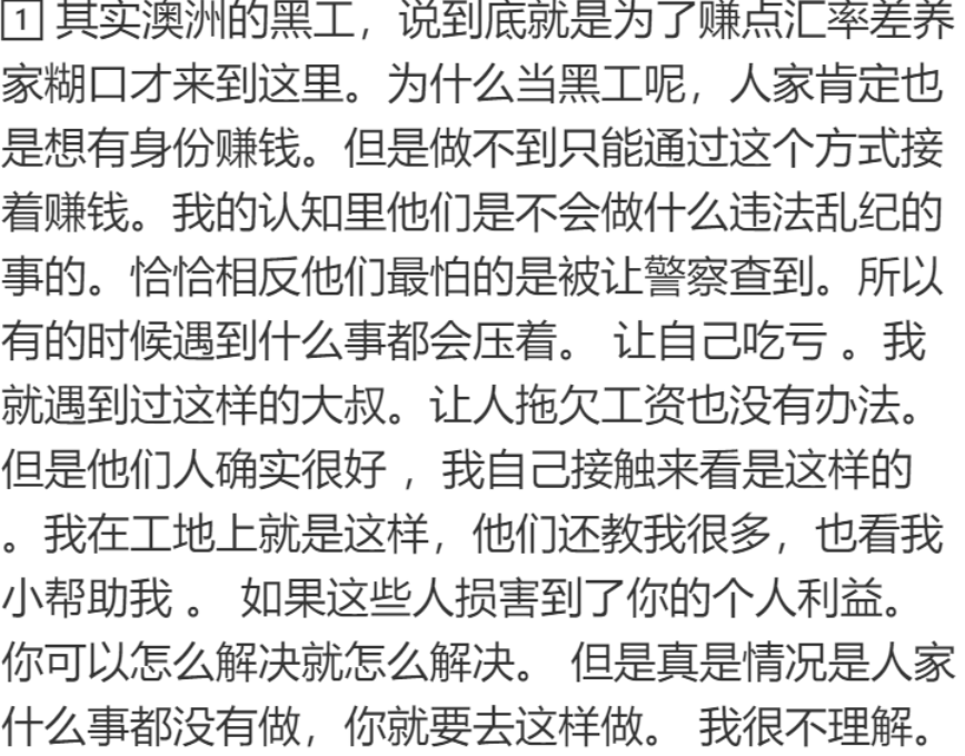 "澳洲消费那么高……黑在那里什么保障都没有,图什么?"
