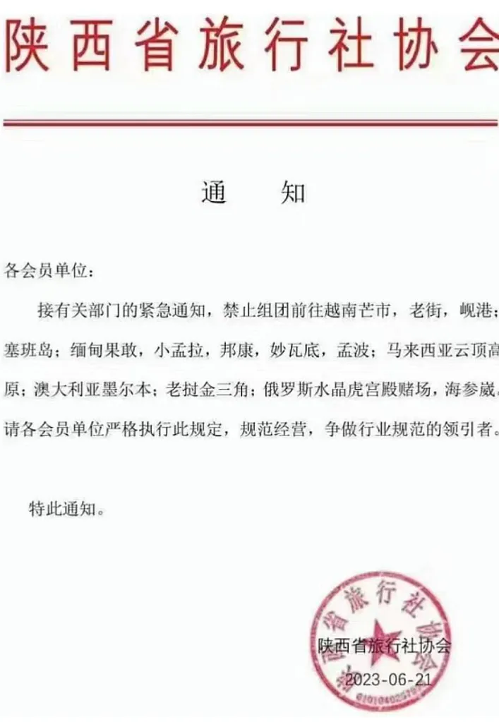 有人猜测墨尔本可能因为某些原因被列入了官方的黑名单,而这一猜测也在2023年6月陕西省旅行社协会的通知中得到了侧面印证。该通知称,接到了有关部门的紧急指示,禁止组团前往包括墨尔本在内的多个海外城市。