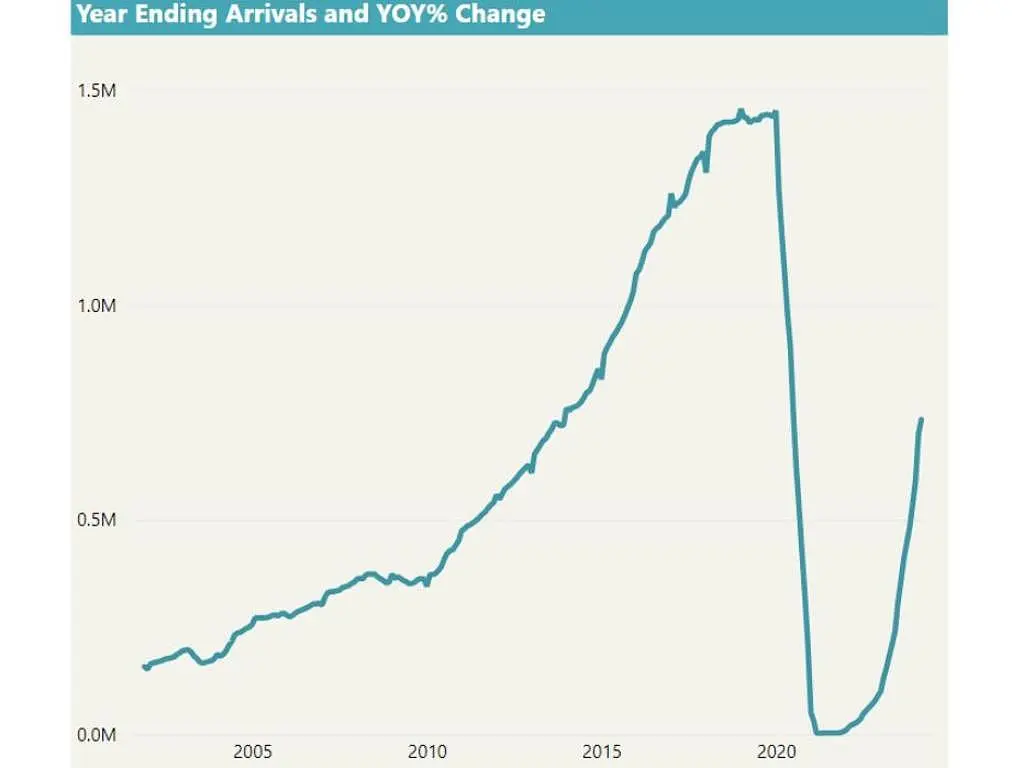 澳大利亚旅游出口委员会(ATEC)的数据突显了中国旅游市场复苏缓慢。尽管自由行游客数量有所增加,但团体旅游市场仍然明显疲软。ATEC董事总经理Peter Shelley强调,尽管中国游客对澳大利亚经济至关重要,但疫情的影响依然存在,团体游的复苏尤其缓慢。