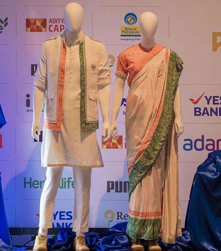 以传统印度服饰的华丽风格而闻名的设计师Tahiliani通过自己的成衣品牌Tasva为印度队设计了开幕式礼服。男装穿着白色kurta搭配 bundi,即无袖尼赫鲁夹克,女装则穿着白色纱丽。男女装的的边饰均为绿色和橙色,这三种颜色呼应了印度的三色旗。
