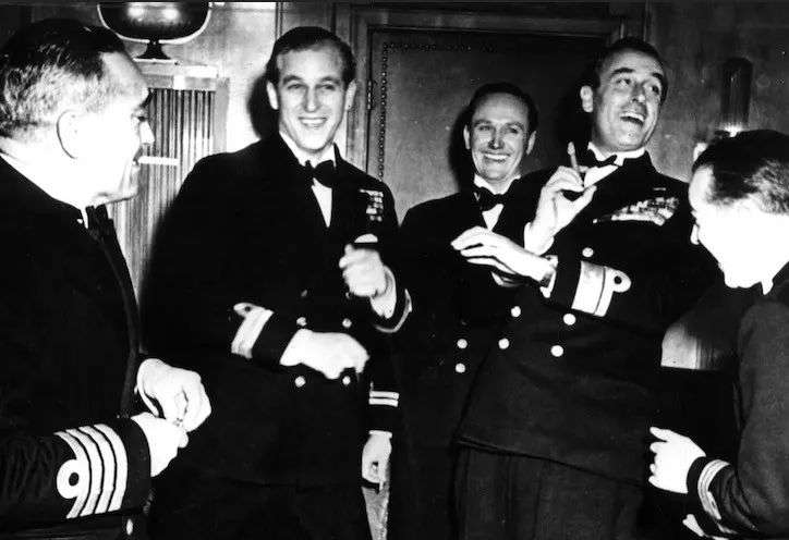 (菲利普亲王(左二)参加海军军官派队)