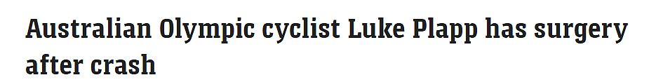 据AusCycling报道,这场事故发生在澳洲东部标准时间周日上午。目前,Plapp的状态稳定。