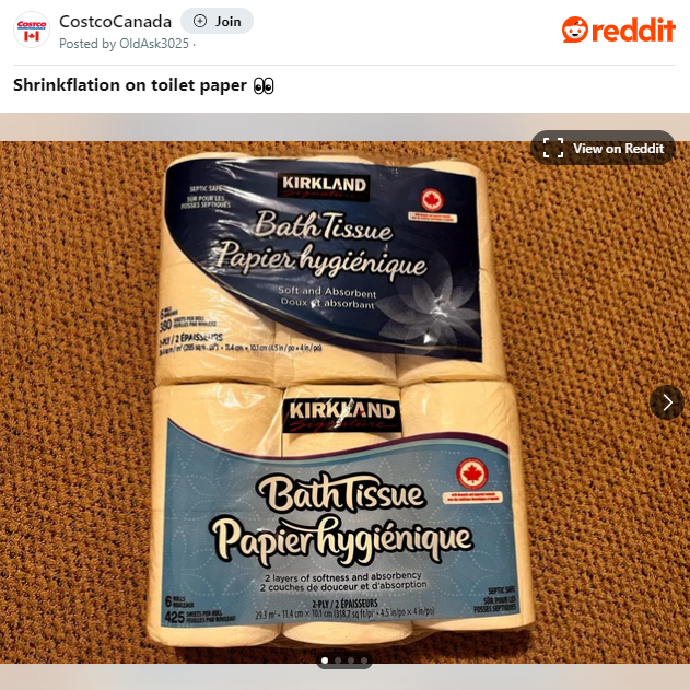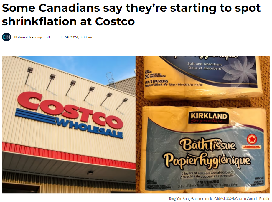 众所周知,Costco以其超大尺寸的产品而闻名,但现在一些加拿大的顾客已经注意到,这家大型零售商的部分商品受到了“Shrinkflation(缩水通胀)”的影响。