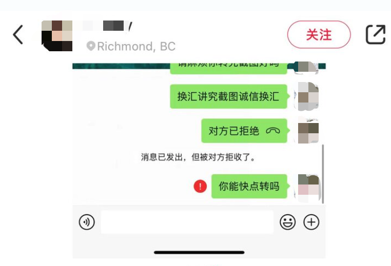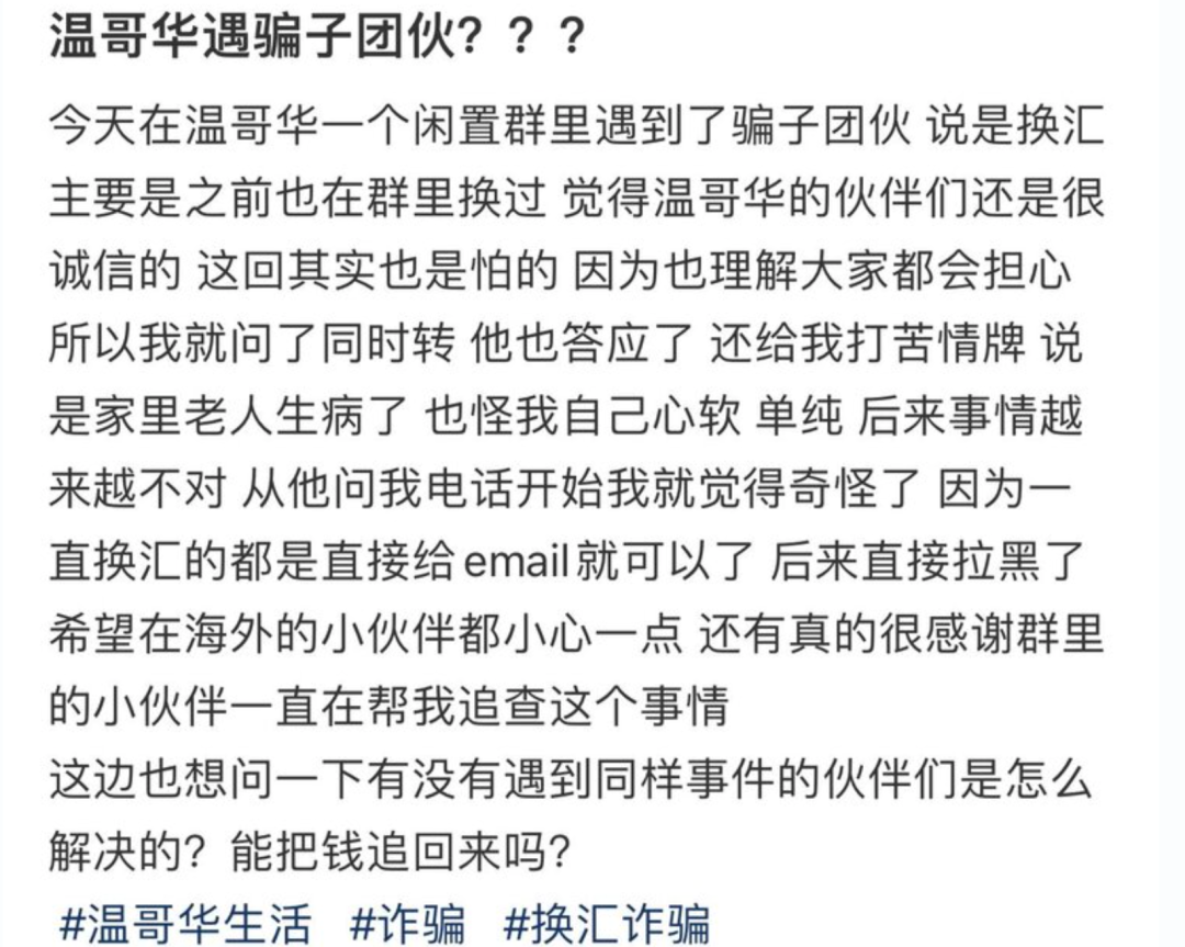 一个大温华人妹子又遇到骗子换汇了