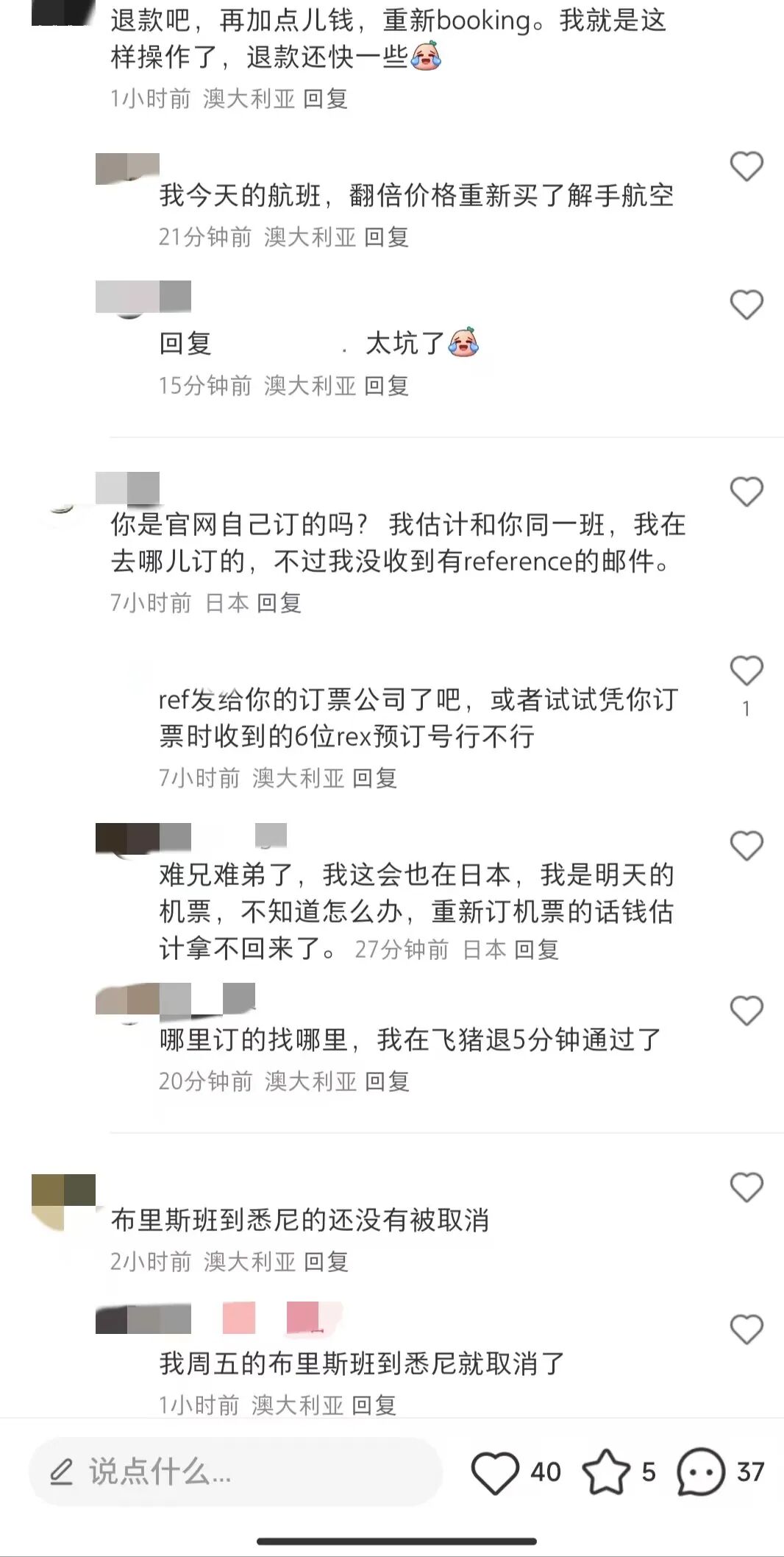 其次,华人常坐的一个澳洲航空公司,今天无了...