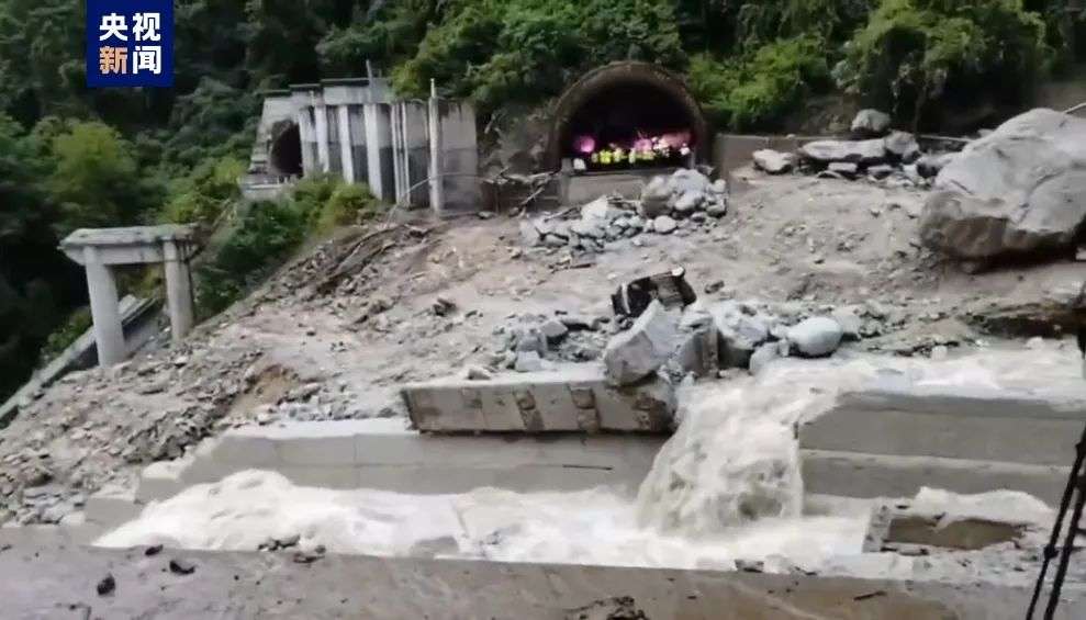 据微甘孜微信公众号消息,8月3日凌晨,雅康高速公路康定至泸定段日地1号隧道至2号隧道处,因突遇山洪泥石流隧间桥垮塌。