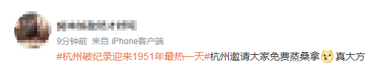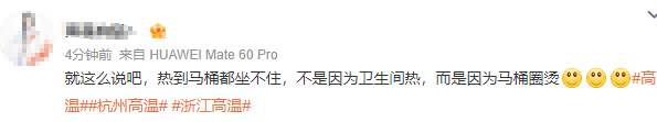 网友:杭州邀请大家免费蒸桑拿;就这么说吧,热到马桶都坐不住,不是因为卫生间热,而是因为马桶圈烫……
