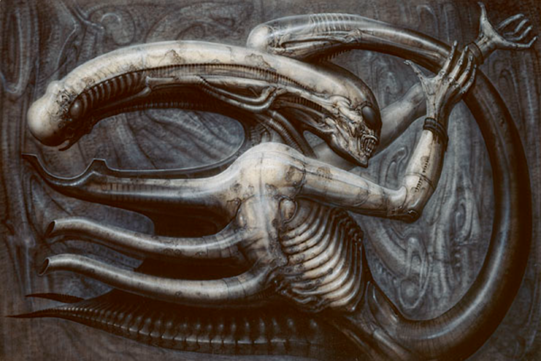 于是,欧班农向斯科特引荐了吉格尔,在看到《Necronom IV》和吉格尔的其他画作后,斯科特立马前往苏黎世和吉格尔碰面,把行星表面的场景、外星飞船的造型以及异形的四种形态,全都交由吉格尔来完成。