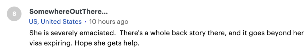 “她身体极度虚弱。这背后还有一段故事,远不止她的签证到期那么简单。希望她能得到帮助。”