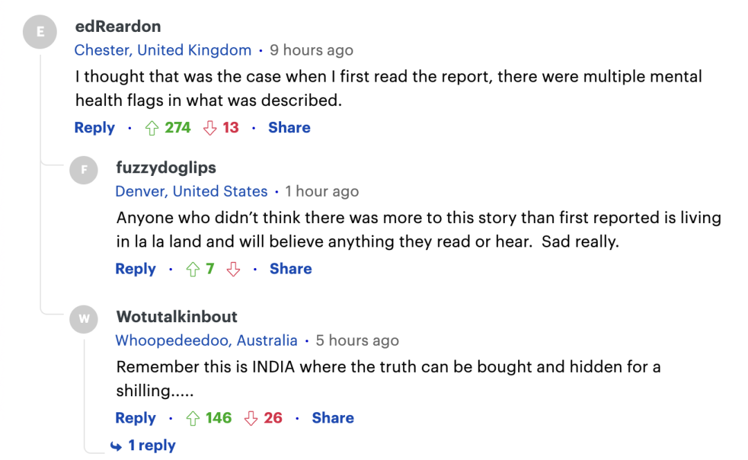 警方还走访了库马尔和前夫的亲属,寻求他们的证词。印度警方也正在试图确定库尔马在过去几个月里与谁有过联系。