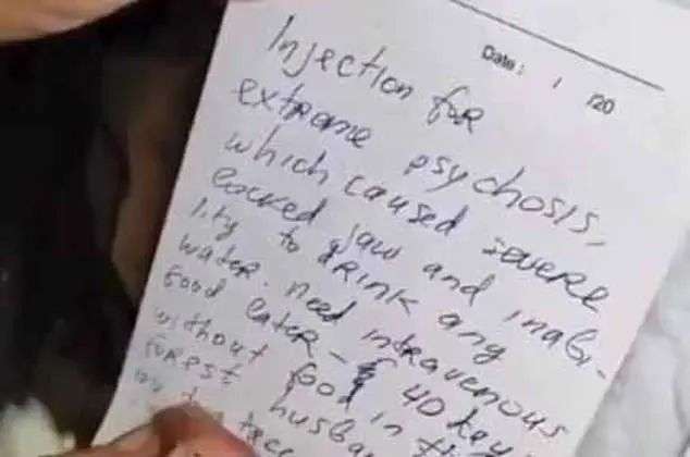 被救援人员发现时,这名女子瘦骨嶙峋,似乎已经快要失去生命体征了。她早已无力言语,但她用笔在纸上写下了对丈夫的控诉。