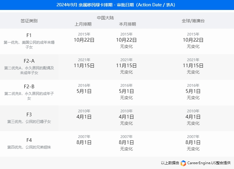 另外还有F2-A类别(绿卡持有者的配偶和未成年子),目前排到2021年11月1日,将近3年的排期。