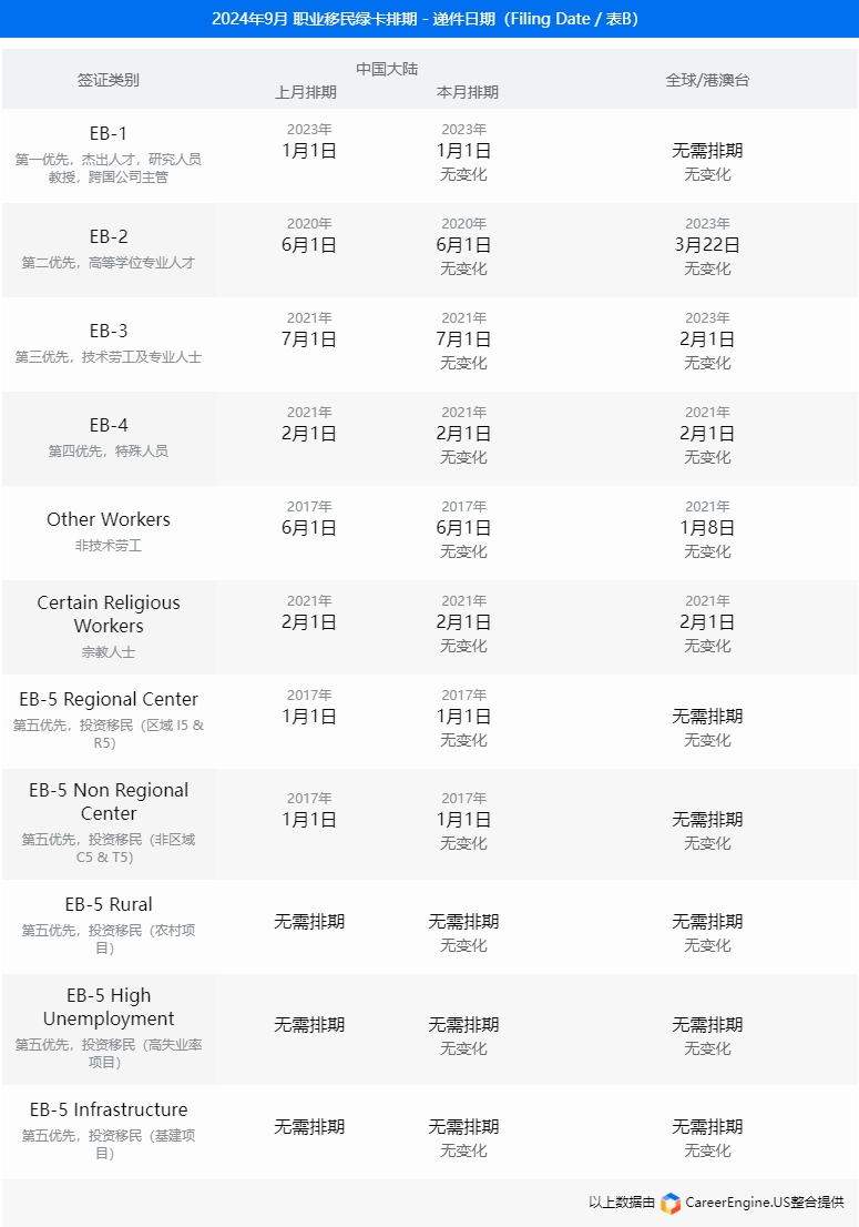 美国国务院公布了2024年9月的最新绿卡排期表,令人失望的是,所有的移民类别都停滞了,这是连续第二个月绿卡排期停滞,合法移民美国正变得越来越难。
