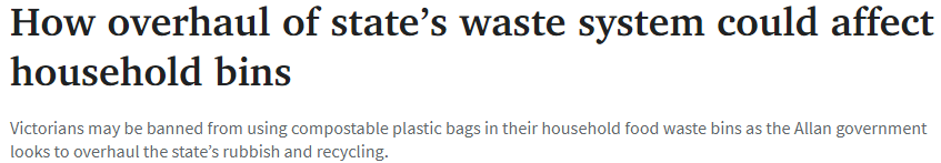 据澳媒报道,维州政府又要开始改革垃圾处理,维州居民可能被禁止在家用食物垃圾桶中使用“可堆肥塑料袋”,这还只是正在拟议改革的一部分。