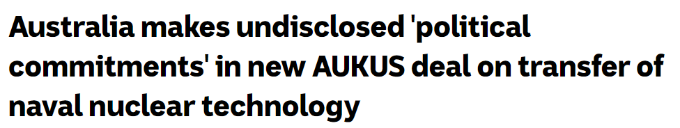 这些内容说明,最新签署的AUKUS协议将允许美国向澳洲转移核废料。这一协议的早期版本于2022年签署,当时仅允许转移“海军核推进信息”。