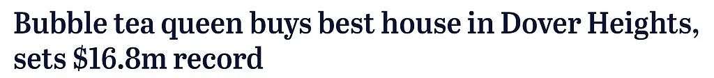 收藏澳洲华人“奶茶女王”$1680万拿下悉尼豪宅,刷新当地房价记录