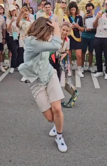 赛艇运动员安格斯·威迪科姆 (Angus Widdicombe) 甚至将她举在肩上,扛着她穿过临时的仪仗队,而Raygun则模仿袋鼠,这一动作在前一天赛场上红遍全网。