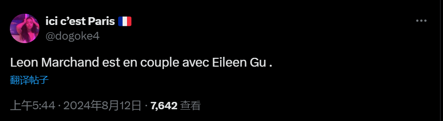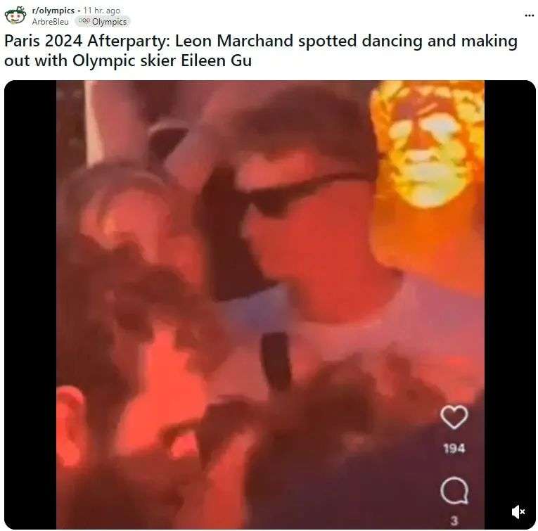 但也网友惊讶,不是有传马尔尚 (Leon Marchand) 与谷爱凌 (Eileen Gu)不是都有男女朋友吗?