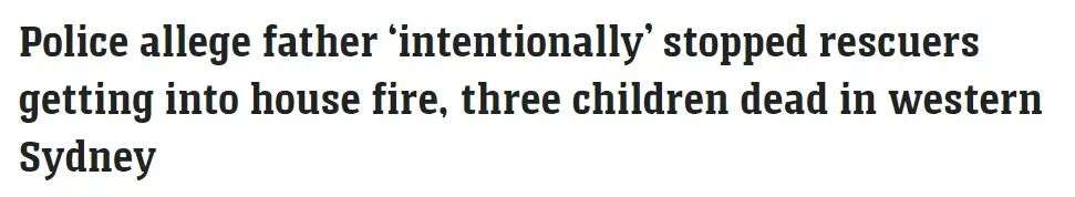 有目击者称,这名阻挠邻居和救援人员进入屋内实施抢救的男子曾尖叫着大喊,“把我留在这里等死。”一名居住在当地的居民表示,他在案发前不久刚刚与这名纵火父亲呆在一起,发现他似乎情绪激动且愤怒。“他看起来很沮丧,不像往常那样开心。”有消息称,这家夫妇二人一直在打架。看情形夫妻间感情并不和睦,但具体原因不得而知。很可能与最终导致三名儿童死亡的这起火灾关系密切。然而警方消息人士称,就在上周,警察曾到访过这户人家,对这一家进行“福利检查”。这家人告诉警方,他们一切安好,不需要任何帮助。你知道吗,在短短12个月内,澳洲便有超过12名儿童被他们的父母杀害。据《Herald Sun》报道,澳洲犯罪学研究所(Australian Institute of Criminology,简称AIC)关于谋杀案的最新报告指出2019至2020年,在全澳范围内,有16名儿童(绝大多数为女童)遭父母杀害。与此同时,死于父母之手的儿童数量为2年前记录的2倍。AIC的报告显示,在2019至2020年发生的16起谋杀案中,10起由父亲们犯下,死者包含6名男孩和4名女孩。12个月期间,一共有34名儿童死亡,其中有10名为不到1岁的婴儿。近年来,墨尔本也发生了一系列令人震惊的儿童凶杀案。Katie Perinovic于2021年初自杀前,杀害了她3个孩子,分别为7岁的Claire、5岁的Anna和3岁的Matthew。事件发生在他们位于Tullamarine的家中,事发时,孩子爸爸Tomislav Perinovic在外购物。Mill Park的父亲Prabhal Sharma则被控于今年1月在家中刺死6岁女儿Vanessa Sharma及妻子Poonam Sharma。此外,Melissa Arbuckle将她3个月大的女儿放在Upwey的铁轨上,导致孩子伤势危及生命。2022年3月,护士Jasmine和2名不足6岁的女儿死在一辆着火的汽车中,在Cranbourne West的Western Port Hwy一侧被人发现。这起案件被警方视为谋杀后自杀。AIC的报告显示,2019至2020年,孩子杀害父母的比例大致相同。除2起外,其余(13起)凶杀案均为男孩所为。男孩造成7名母亲和6名父亲死亡,2名母亲被女儿所杀。2021年5月,78岁的Judy Bednar在Chelsea的家中疑似被患有精神分裂症的儿子Thomas Bednar杀害。监控录像显示,在她死亡时间前后,儿子身穿防护服进出家门。新南威尔士州侦探警司多尔蒂(Danny Doherty)表示,家庭纠纷可能导致了“可怕的谋杀行为”。他透露,“大多数孩子是被告的亲生孩子,但无论如何,他们是他的家人,他们是他的孩子。”继今年女性暴力死亡人数激增,以及一系列备受瞩目的袭击事件之后,澳洲总理阿尔班尼斯将澳洲的家庭暴力描述为一场“国家危机”。就在昨天晚上,昆州黄金海岸一名46岁的华人母亲徐某,被控在家用刀割开了自己年仅10岁女儿王某的喉咙。