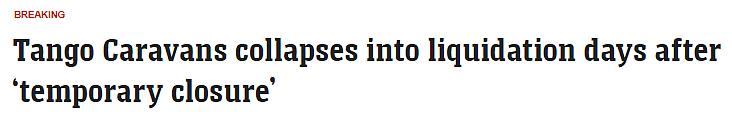 周三下午,总部位于墨尔本Somerton的房车公司Tango Caravans Pty Ltd宣布进入清算程序。据悉,该公司专门生产定制房车。
