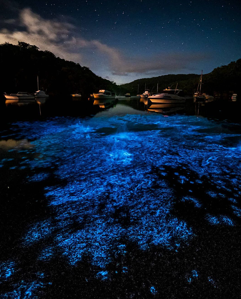 事实上,这并非澳洲首次出现如此壮观的生物发光现象。在过去几年中,类似的景象曾多次被观察到。2021年,悉尼的Lavender Bay就曾出现过这种美丽的蓝色荧光。同年,以及2023年,塔州有相似的报道。此外,2020年,新州的Jervis Bay同样见证了这一奇观。