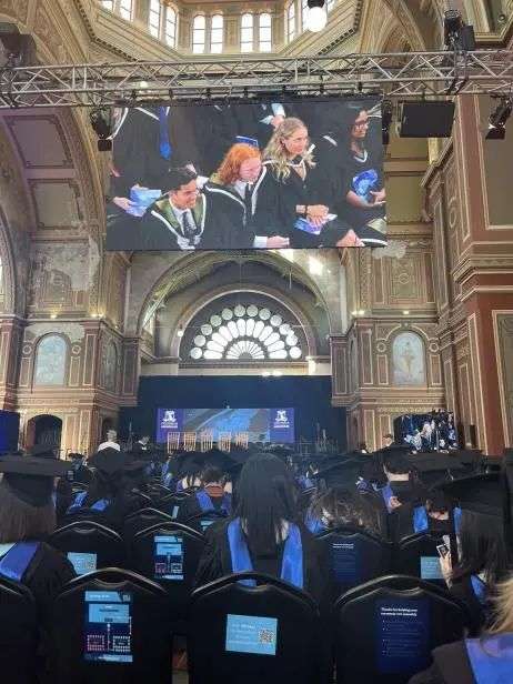 “他们真的很细心很严肃地在对待这份工作,并且动作很温柔!” 毕业生激动地说:“所以我就感觉我花的钱值了!他们甚至知道用大头针把领子固定在学士服上!”