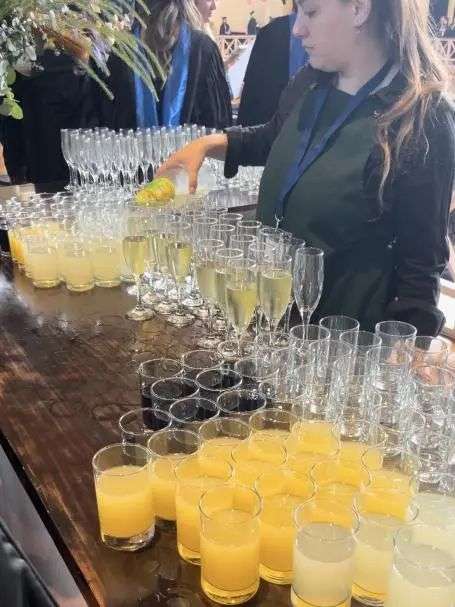 仪式结束后,所有毕业生在嘉宾的注目中上楼,楼上学校准备了酒水和冷餐,可以与嘉宾们一起享用!