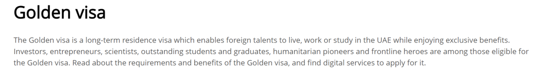 近年来为了吸引全球投资,阿联酋政府开放政策让更多外国人定居生活,推出了黄金签证政策。该政策允许外国投资者、企业家、科学家、艺术家等高净值人士获得10年的长期居留权,并可延期续签。