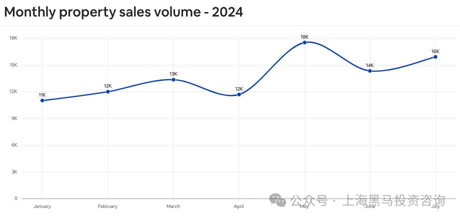 而2024年7月,迪拜房地产市场继续显示出强劲的增长势头,月内共记录了超过17,000笔交易,总额高达555亿迪拉姆,再次刷新纪录。与2023年7月相比,交易量和交易价值分别增长了59%和57%。