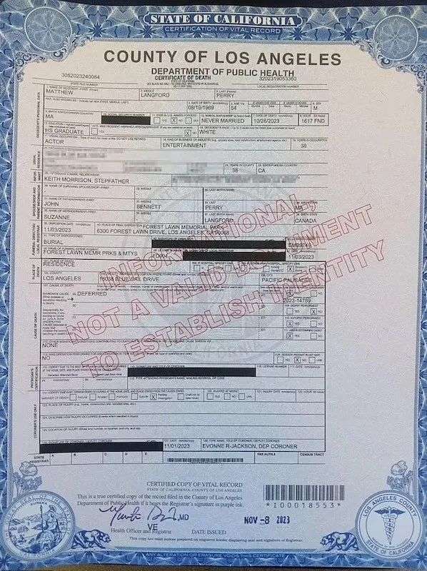 2023年10月28日,佩里最终溺死在了洛杉矶的别墅,死后身体被检测出含有大量氯胺酮。
