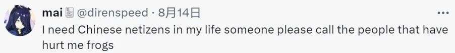 “我的生活需要中国网友,拜托谁去骂一下那些伤害过我的人是蛤蟆。”