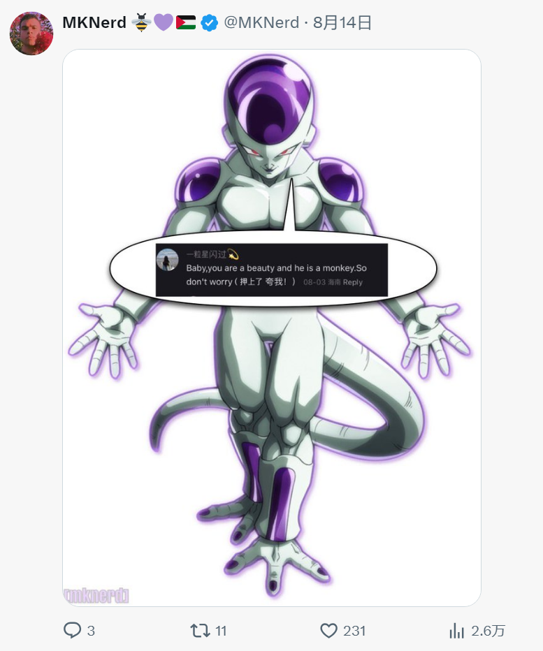 (老外把“你是美人而他是个吗喽”那句话做成了梗图)