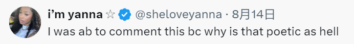 “我正准备评论这句,这也太有诗意了吧。“