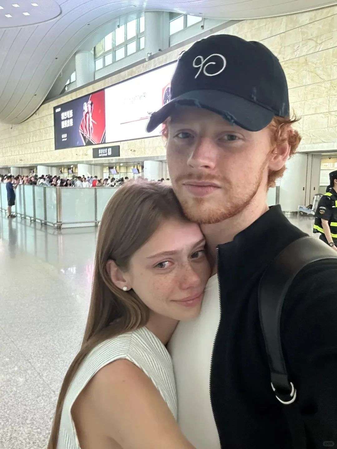 上周三,男友提前搭飞机离开了中国。前去送行的Kris依依不舍,靠在男友怀里哭泣,事后她分享了告别时的合影,配文“再见宝贝”。
