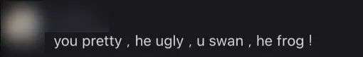 “You pretty,he ugly,u swan,he frog.”