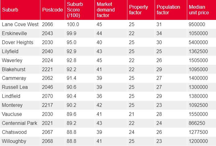 其他被认为能为投资者提供类似机会的郊区包括悉尼北岸的Lane Cove West、Naremburn、Chatswood 和North Sydney,以及悉尼南部的 Blakehurst 和 Monterey。