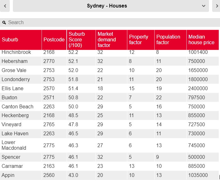 Finder 投资指数显示,这些位于悉尼内南区和内西区的郊区需求大幅增加,人口增长速度也位居前列。