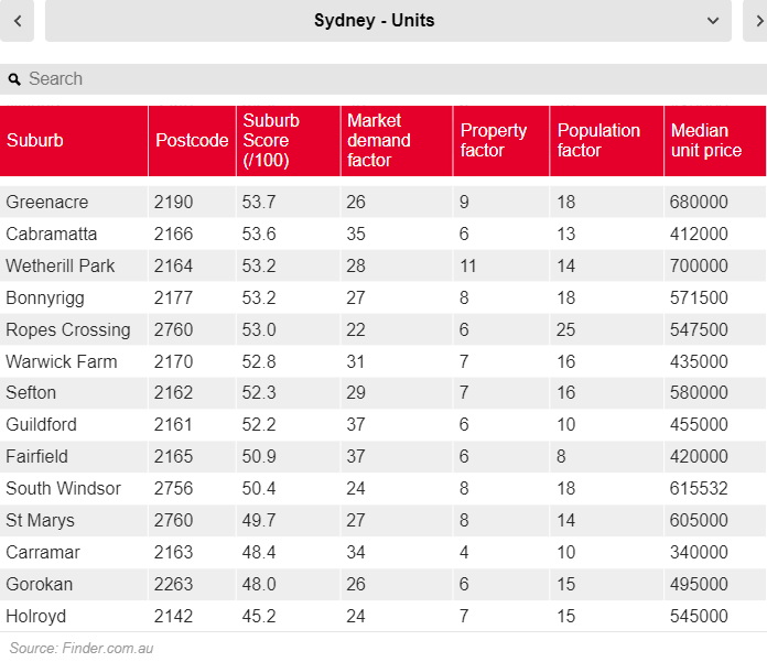 Finder 对每个城市市场进行了调查,以更高的租金回报和资本增长前景来衡量,结果显示,最适合投资者的郊区大多位于悉尼内南区。
