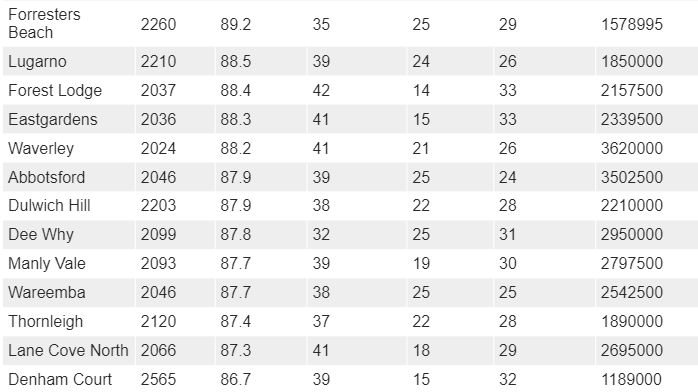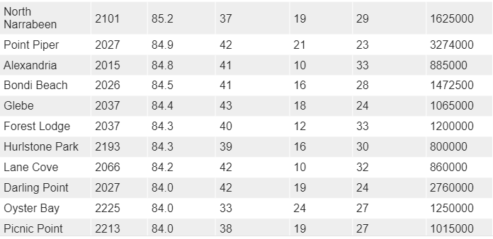 在独立屋,Seaholme凭借其卓越表现获得了90分以上的高分;
