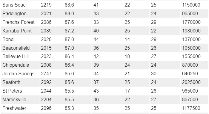被认为不适合独立屋或公寓投资者的郊区包括西南部的 Carramar 和 Vineyard ,以及中央海岸的偏远地区和悉尼大部分乡村边缘地区。